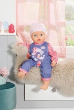 Baby Annabell in echter Babygröße. Mit weichem Körper perfekt zum Kuscheln und Liebhaben. Sie hat Schlafaugen und mit dabei sind ein Strampler, Mütze und Flasche sowie die passenden Schühchen.