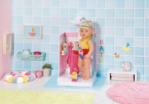 DuschspaĂź mit dieser begehbaren Dusche, mit Ente Berta zur Einstellung der Temperatur und Stickerbogen fĂĽr den individuellen Look der Dusche.