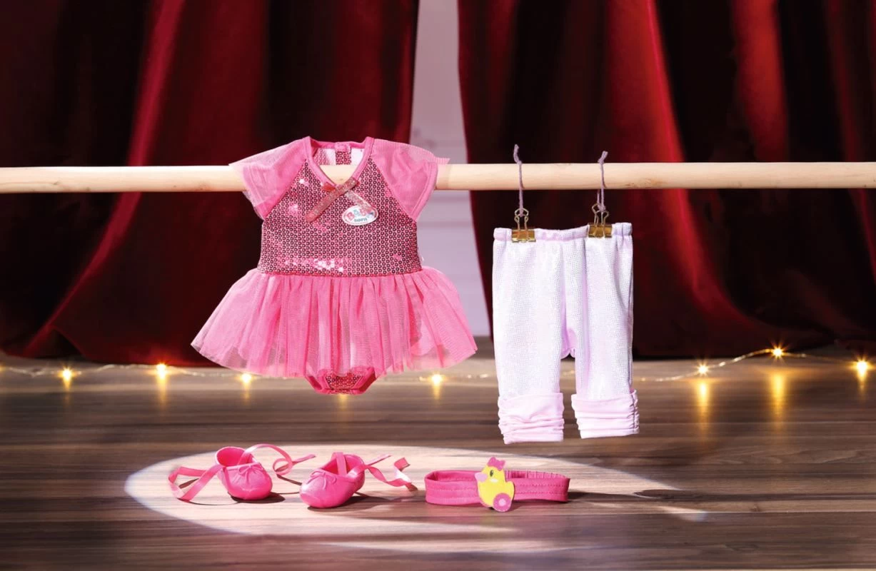 Deluxe Set für kleine Ballett- Liebhaberinnen. Mit pinkem Tütü, Glitzerpailetten, Stirnband, Ballettschuhen, Leggings, Turnbeutel und Jäckchen.