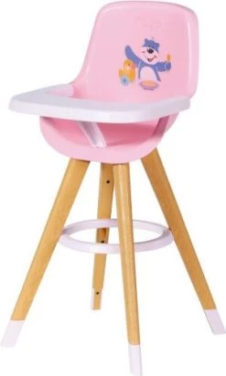 Im praktische Hochstuhl kannst du BABY born ganz einfach füttern. Der Stuhl im skandinavischen Design hat Beine in Holz-Optik und einen bequemen pinken Sitz. Bär Bruno und Ente Berta warten auf der Rückenlehne auch schon gespannt aufs Essen. Auf dem hellrosa Tischchen haben BABY borns Breiteller und ihre Flasche Platz. Und natürlich ist das Tischchen nicht nur zum Essen da. Hier darf auch gemalt, gebastelt und mit Bauklötzen gespielt werden. Hochwertiges Zubehör für die BABY born Markenspielpuppe. Für erweitertes, abwechslungsreiches und langanhaltendes Spielvergnügen. Auch für kleinere Puppen geeignet. BABY born Hochstuhl.