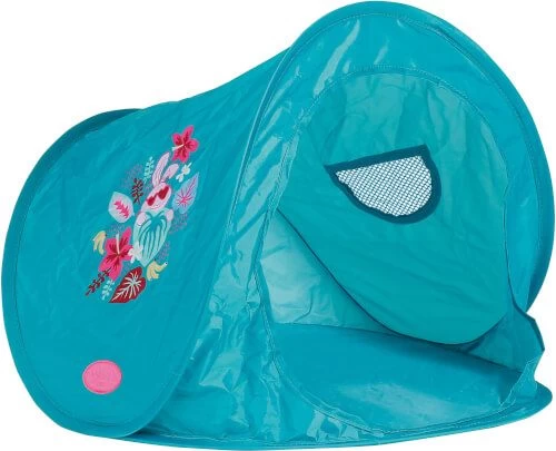 Eine Strandmuschel, fĂĽr ein bisschen Schatten, eine Strandtasche, Badelatschen, eine Luftmatratze, kĂĽhlende Getränke und ein Schwimmreifen in coolem Sommerdesign, das richtig gute Laune macht.Â