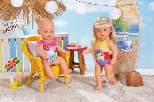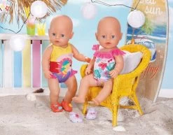BadespaĂź beim Babyschwimmen mit BABY borns BadeanzĂĽgen in farbenfrohem Holiday Design. Ab 3 Jahren.
