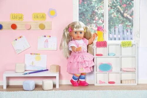 Die BABY born Familie bekommt Zuwachs. Die große Schwester der Little BABY born darf in den Kindergarten gehen. BABY born Kindergarten Little Sister mit Ihrem langen blonden Haar zum kämmen und frisieren, freut sich sehr darauf mit all Ihren Freunden im Kindergarten zu spielen. Inkl. 7 Funktionen und 8 Accessoires.