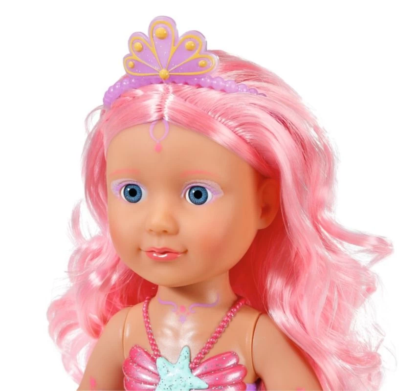 Das abwechslungsreiche (Rollen-)Spiel mit BABY born fördert die Fantasie und unterstützt nachweislich die Entwicklung sozialer Fähigkeiten und Werte wie Verantwortung, Kommunikation und Einfühlungsvermögen. Batterien erforderlich (nicht im Lieferumfang enthalten). BABY born Little Sister Meerjungfrau 46cm. Inklusive Kamm und Diadem.