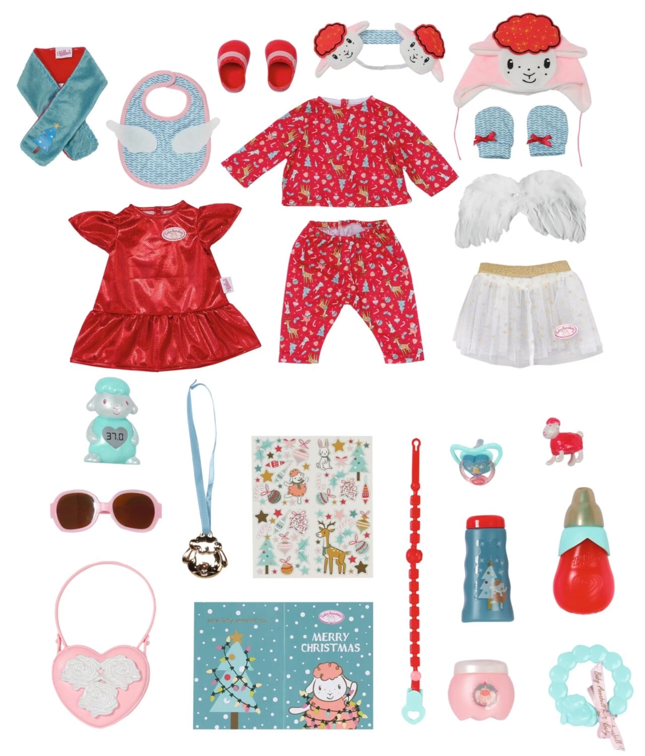 Baby Annabell Adventskalender aus 24 Ăśberraschungen, bestehend aus KleidungsstĂĽcken und Accessoires fĂĽr Baby Annabell.