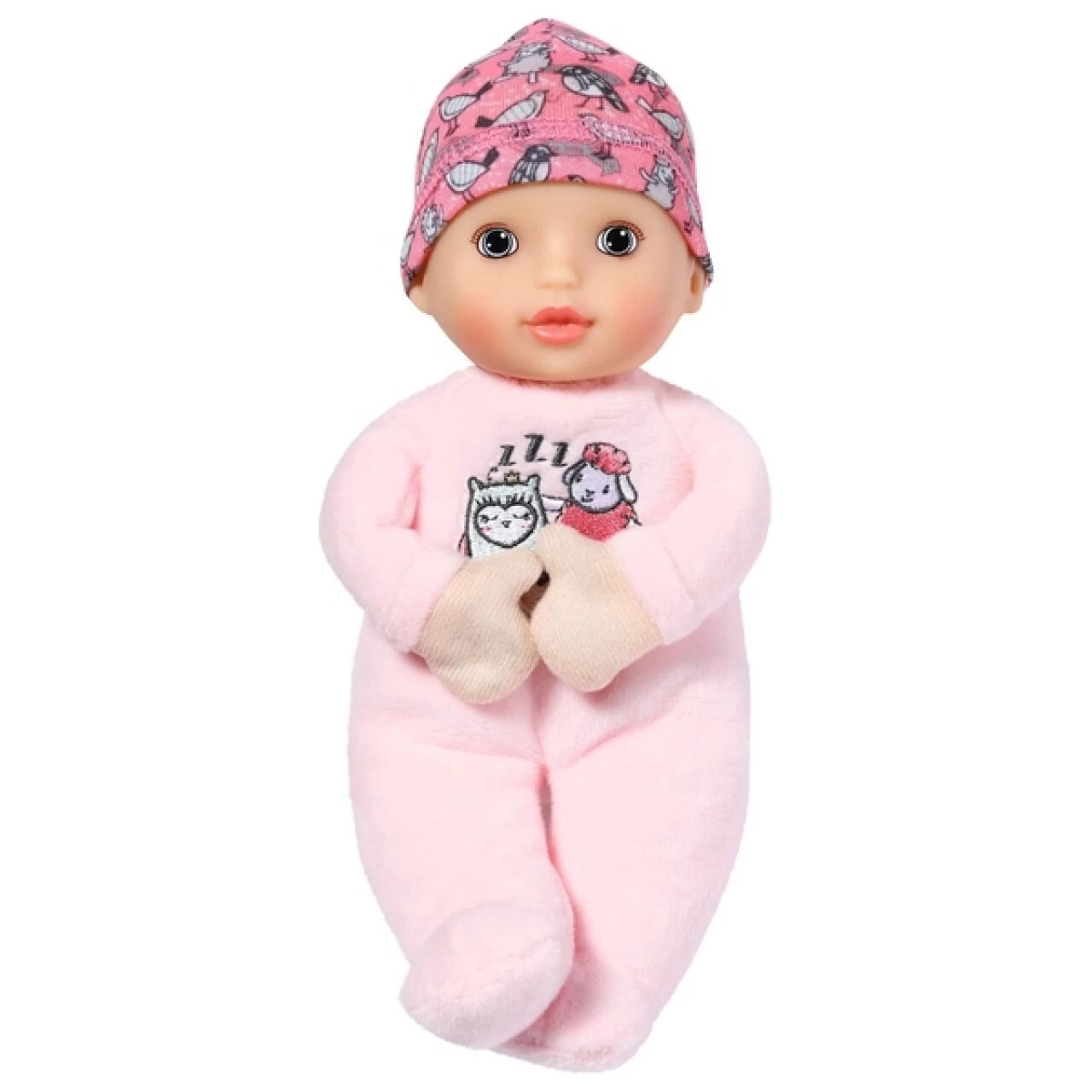 Die Bodys sind mit putzigen Motiven bestickt. Baby Annabells Lieblingsschaf hat nämlich eine neue Freundin, die Schlummereule. Auch die Mützchen sind mit Schaf und Vogelfreunden bedruckt.
