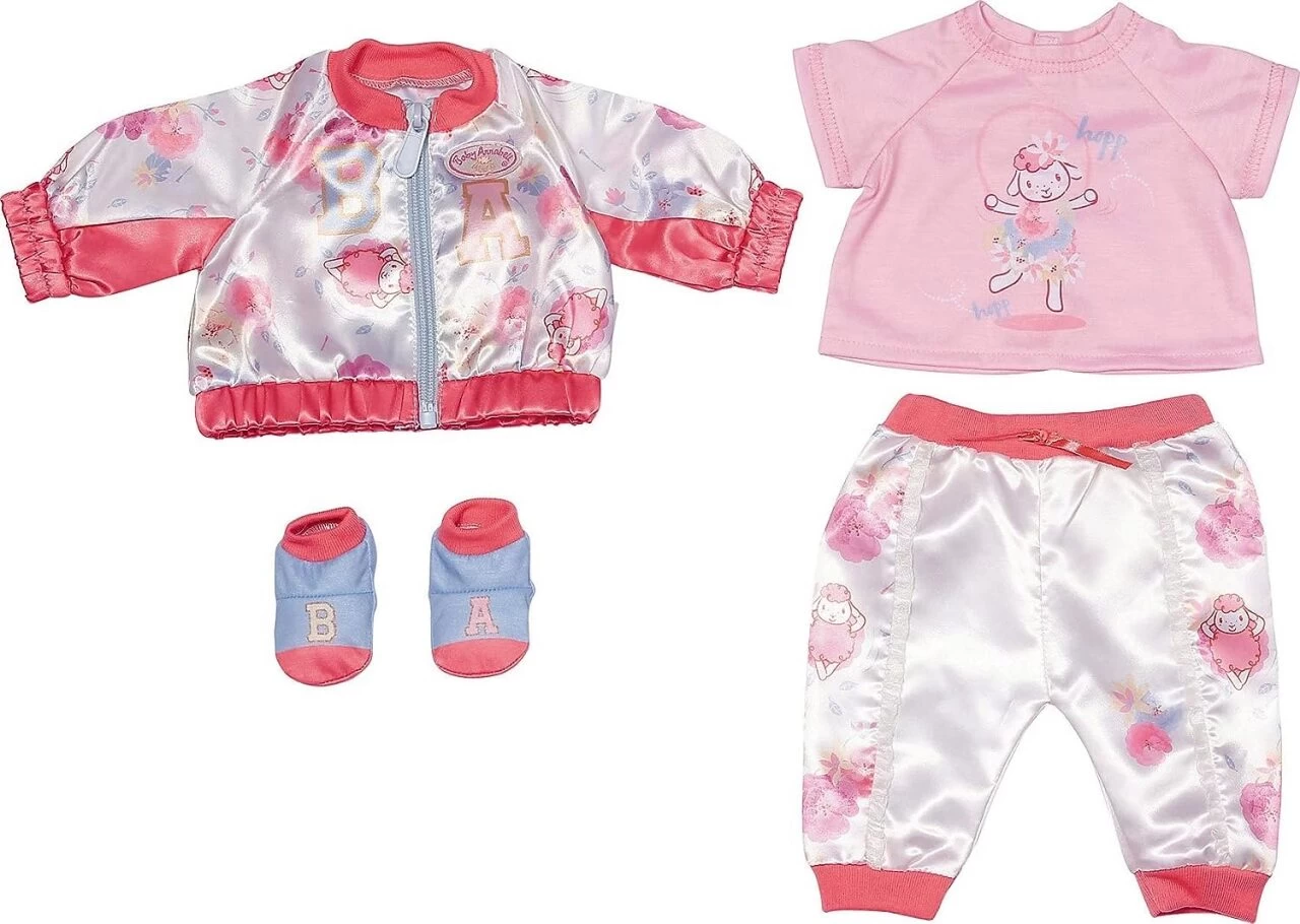 Draußen zu sein macht Baby Annabell immer glücklich. Liegt das an der frischen Luft, den bunten Blumen oder ihrem putzigen Outdoor-Outfit? Wahrscheinlich an allen drei Sachen… Die Kombination ist mit bunten Blumen und Baby Annabells Lieblingsschaf bedruckt. Auf der beigen Jacke mit den gerippten Bündchen prangen Baby Annabells Initialen. Das Schäfchen hüpft im Blütenrock Seil auf dem rosa Oberteil. Und die Hose im Jogging-Style hat seitliche Einnäher mit Blumenmotiv und Rüschensaum. Dazu trägt die kleine Entdeckerin Söckchen. Original Kleidung für die Baby Annabell Markenspielpuppe. Das hochwertige Zubehör fördert die Fantasie und bringt neue Spielanregungen und -möglichkeiten. Baby Annabell Active Deluxe Outdoor 43cm aus Jacke, Shirt, Hose und Socken.