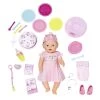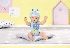 BABY born® Soft Touch Boy mit Body und Mütze. Inklusive 1 Töpfchen, 1 Windel, 1 Teller mit Löffel, 1 Portion Brei, 1 Flasche, 1Schnuller mit Schnullerkette, 1 Geburtspass und je 1 Freundschaftsbändchen für Kind und Puppe.