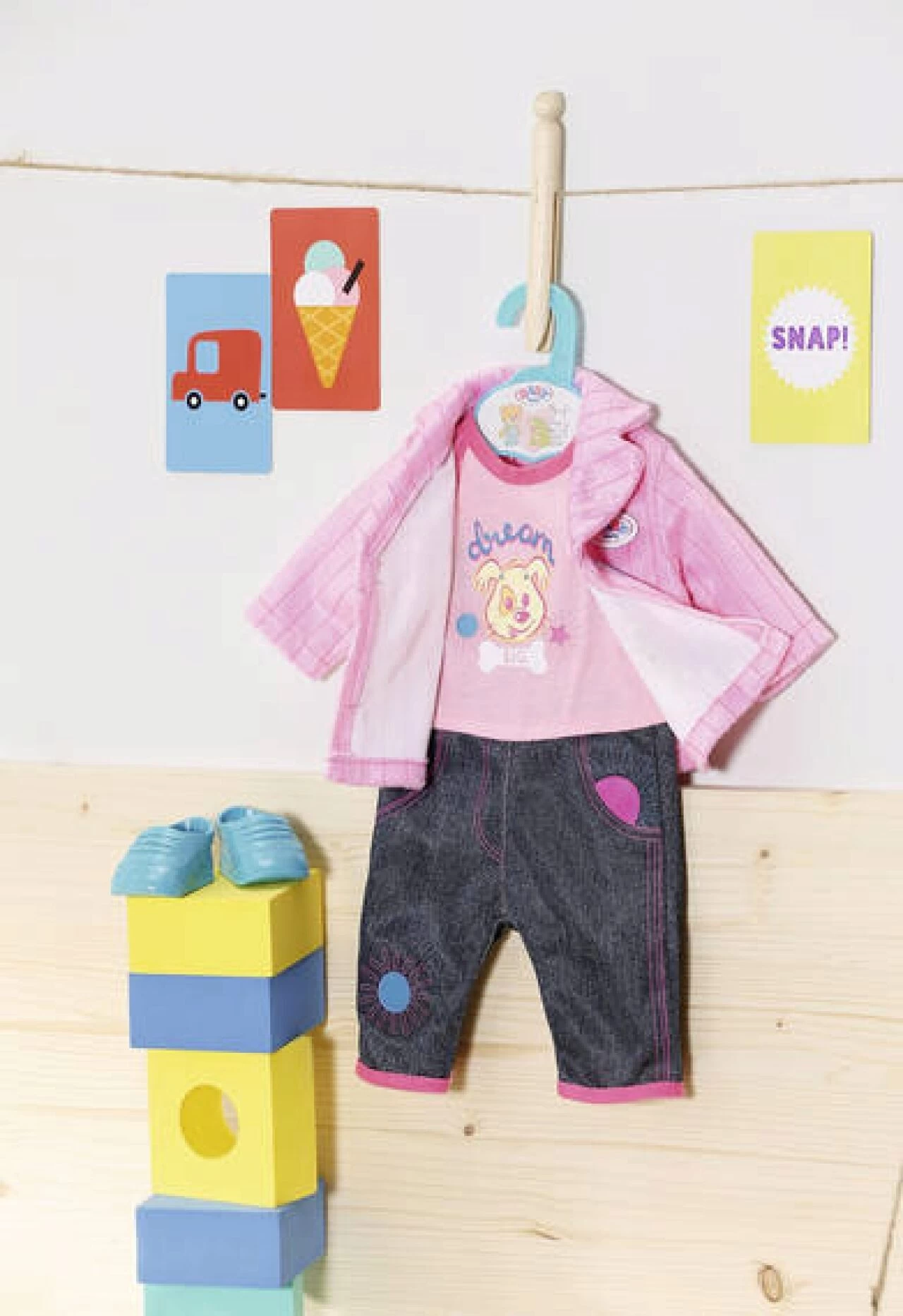 BABY born Kleines Kita Outfit 36cm aus Einteiler, Jacke und Schuhen. Inklusive farblich passendem KleiderbĂĽgel.