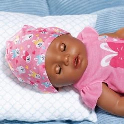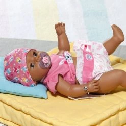 Schlafen, Baden und Essen sind des Girls Lieblingsbeschäftigungen. Sie trinkt gerne Wasser aus ihrem Fläschchen und kann dann Pipi in die Windel oder ins Töpfchen machen und echte Puppentränen weinen. Neben Wasser steht der BABY born Brei auf dem Speiseplan. Dann macht sie sogar ihr großes Geschäft. Ihre Arme, Beine und der Kopf sind super beweglich, so dass das An- und Ausziehen der stylischen Kleidung zum Kinderspiel wird. Der Soft Touch Körper ist angenehm weich.