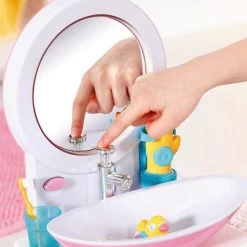 BABY born Bath Handwaschbecken mit Licht- und Sound-Effekt. Inklusive Zahnbürste, Zahnputzbecher, Seifenspender, Entenstöpsel und Handtuch.