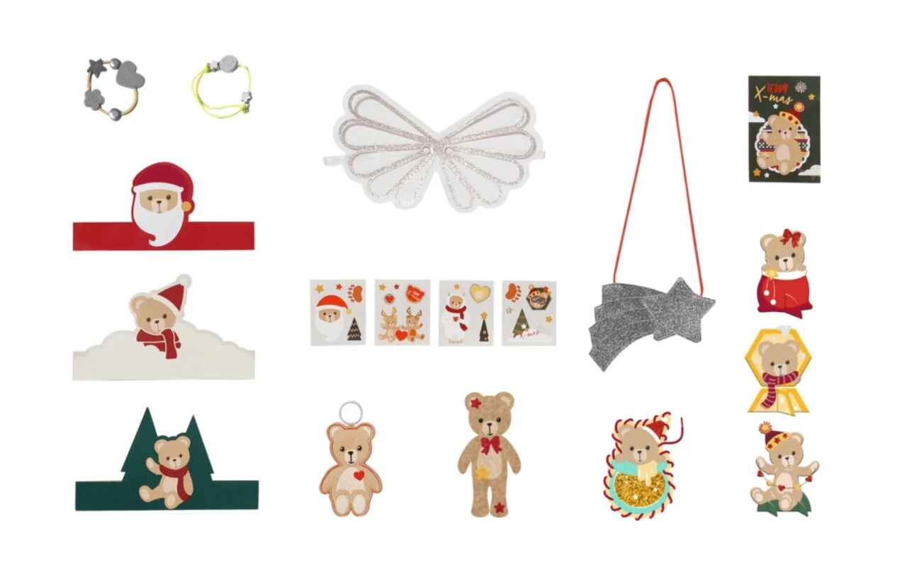 Weil BABY born einen wunderbaren neuen Freund hat, den BABY born Bär, hat sie sich eine bärige Vorweihnachtszeit gewünscht. Deshalb sind auf diversen Teilen im Adventkalender süße Bären zu finden. Auf dem grauen Pulli ist ein Eisbär zu sehen und auf dem roten ein Teddy unter dem Weihnachtsbaum. Die gelbe Hose ist über und über mit Tatzenspuren bedruckt, die bis hinauf zur Mütze mit Fellsaum reichen. Die rot-grünen Stiefel sehen aus, wie kleine Bärenfüßchen. Auch an das glitzernde Nordpoleis und die norwegische Heimat der Bären wurde gedacht. Der eisblaue Tüllrock und die silbernen Leggings funkeln ganz zauberhaft. Auf der zweiten Bommelmütze, dem Schal und den Hausschuhen ist ein Norwegermuster zu sehen.