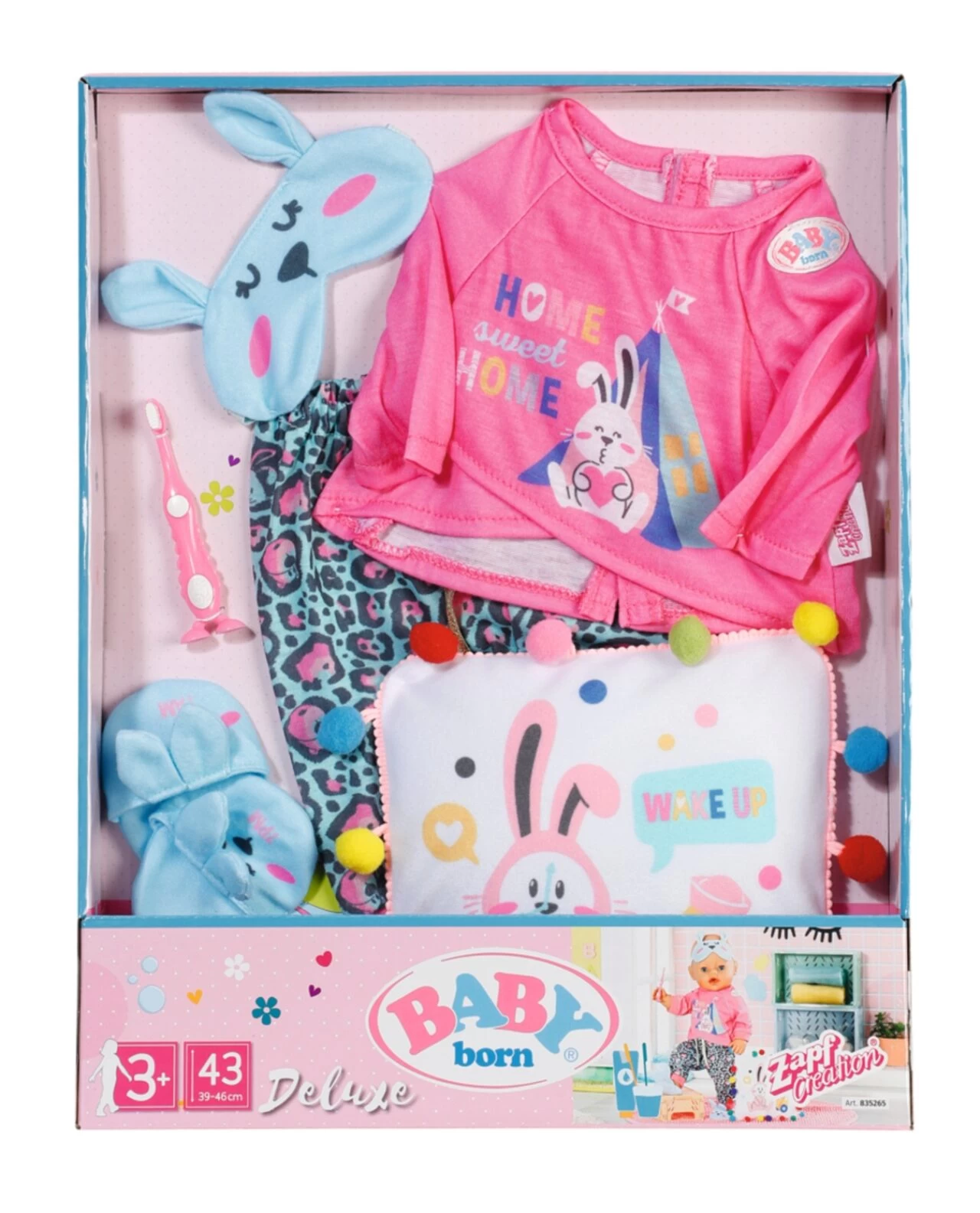 BABY born Bath Deluxe Gute Nacht Set 43cm aus Shirt, Hose und Pantoffeln. Inklusive Schlafmaske, Kissen und ZahnbĂĽrste.