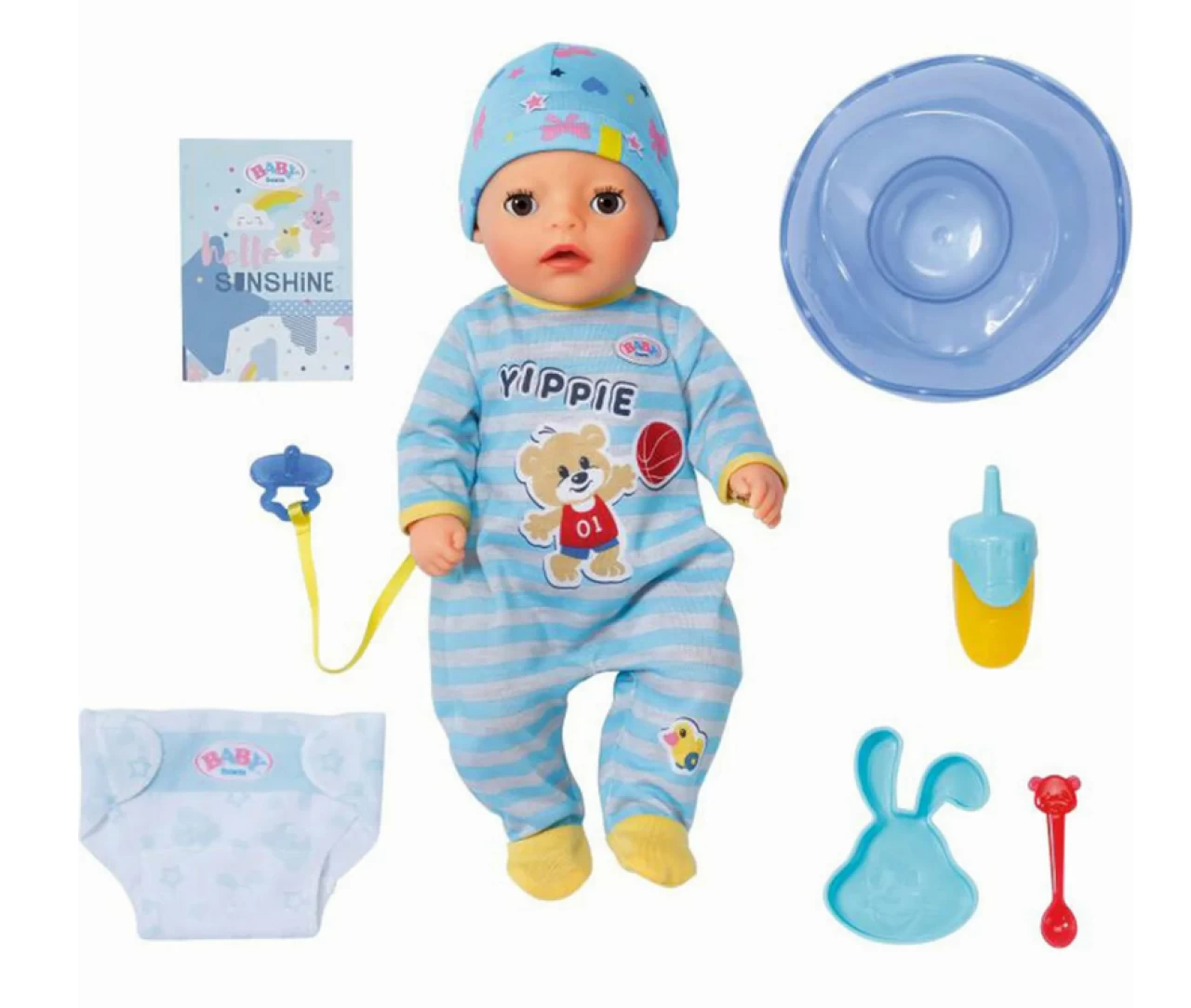 BABY born Little Boy 36cm mit Strampler und Mütze. Inkl. 1 Töpfchen, 1 Stoffwindel, 1 Flasche, 1 Teller mit Löffel, 1 Schnuller und 1 Geburtspass.